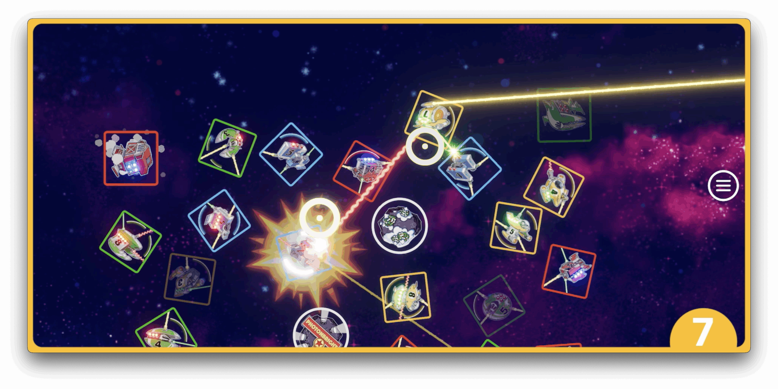 相手の宇宙船を狙って攻撃したり、逆にシールドで攻撃を防いだり、小惑星を狙って鉱石をゲットしたり……10秒間で最適な配置を探し出せ!