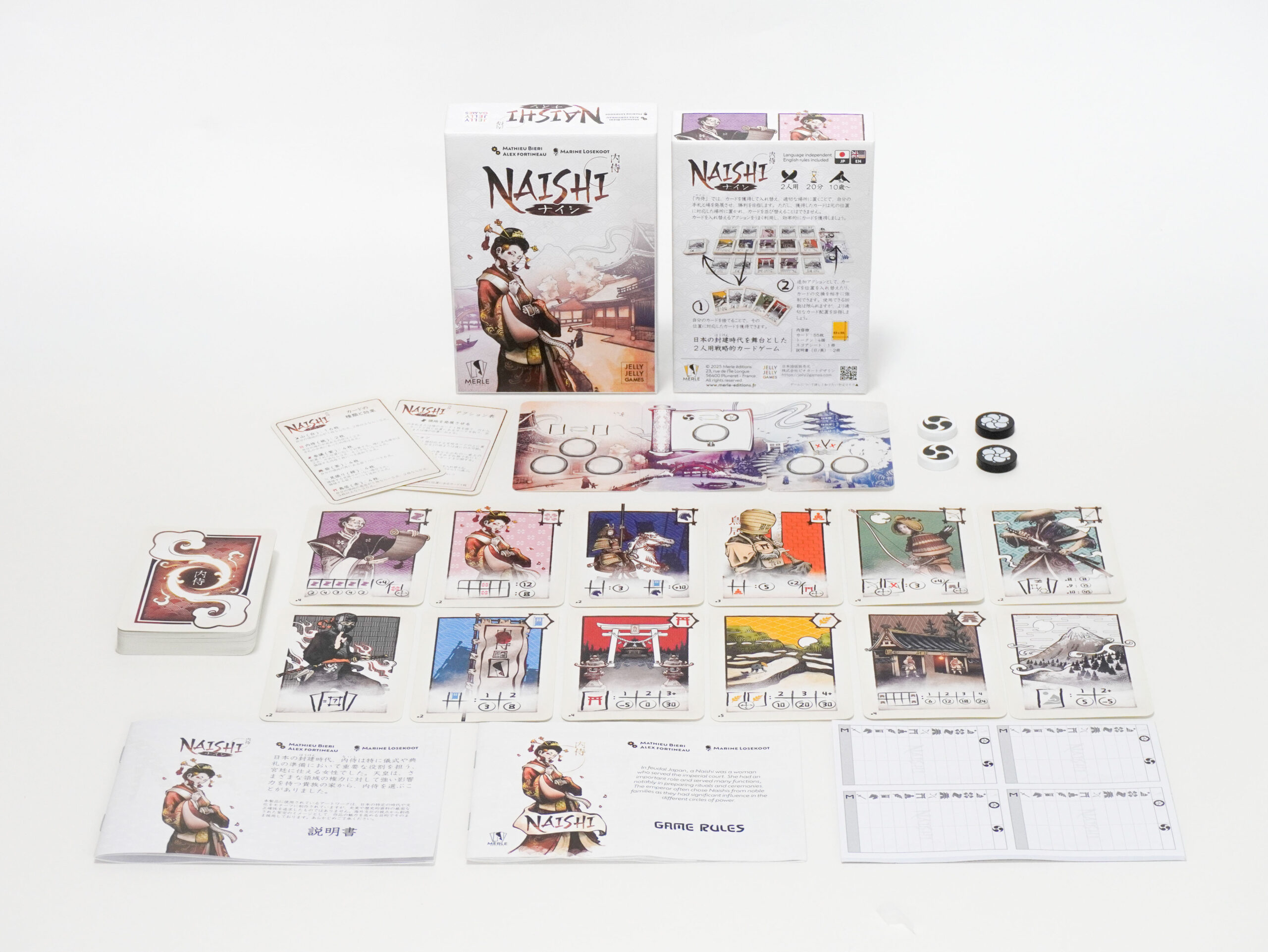 発売日 ゲームマーケット2026春 先行発売「NAISHI-内侍-」は日本の封建時代を舞台とした2人専用カードゲームです。