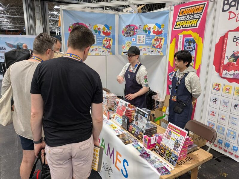 権利や輸送コストの問題で展示のみのゲームも多く、販売よりも通販サイトへの誘導がメインとなりましたが、それでもイベントがイベントなだけあって、展示していたボードゲームに対して多くの方に興味を持っていただけました。