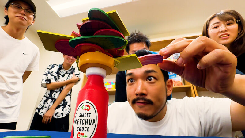 ③ケチャップが倒れる、ポテトが爆発したらゲーム終了!そのプレイヤーの負け!