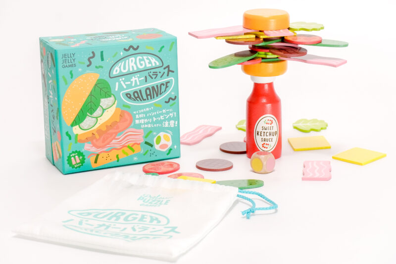 『バーガーバランス』はイギリス生まれのアクションゲーム! Gift of the year 2021優秀賞を受賞しており、輸入版を販売した際にはボードゲームショップJELLY JELLY STOREで週間販売数ランキング1位を獲得した人気商品です。今回は満を持して日本語版を発売いたします!