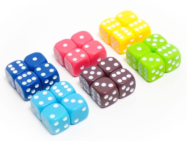 • 内容物:ダイス24個 (6色 × 4個)、ボード 3枚、ついたて 1枚(ルールは箱の裏に記載)